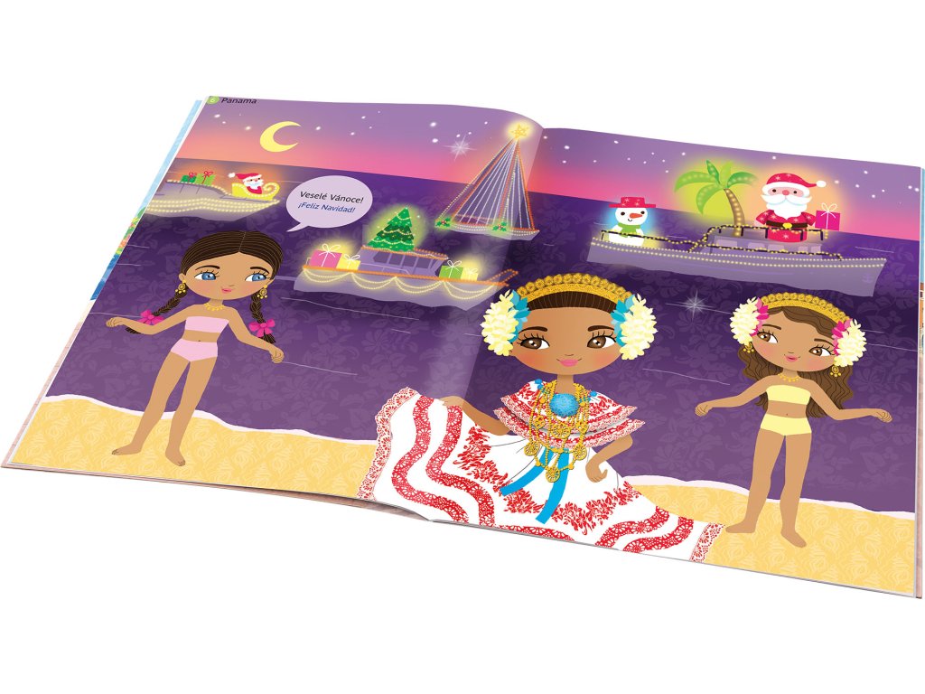 Objevujte, jak se slaví Vánoce v různých koutech světa! Oslavujte s panenkami po celé zeměkouli. Doprovoďte je na přehlídku překrásně osvětlených lodí v Panamě, na tradiční vánoční trhy v Německu nebo zavítejte do domečku Santa Clause. Díky této novince ze série, která patří k našim nejprodávanějším, poznají malí čtenáři tím nejjednodušším a zároveň hravým způsobem, jak se slaví Vánoce za našimi hranicemi, poznají cizí zvyky, módu i mnohá zajímavá místa. Atraktivní obrázky mohou doplňovat více než 300 úžasnými samolepkami!
